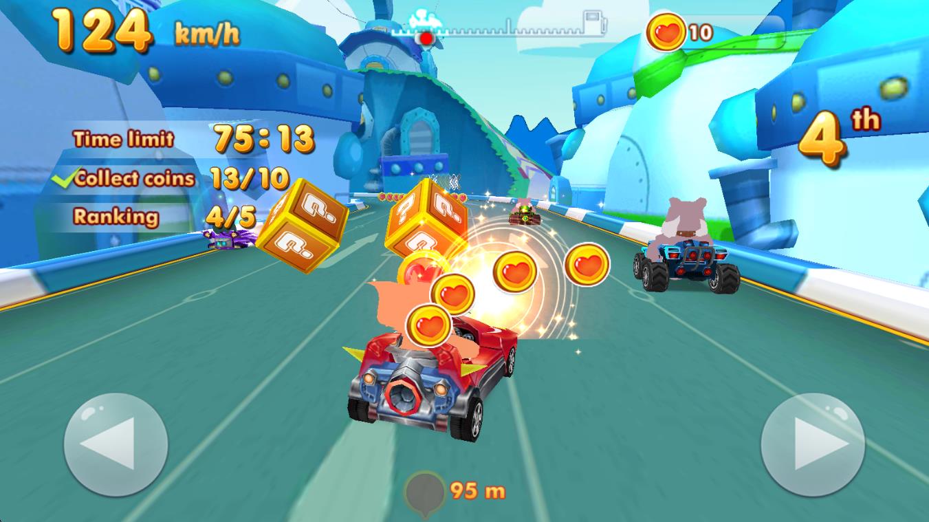 3、礼物收集机制:比赛中除胜利奖励外,赛道沿途分布隐藏礼物,收集后可解锁角色皮肤、特殊赛道,为游戏增添额外探索动力。