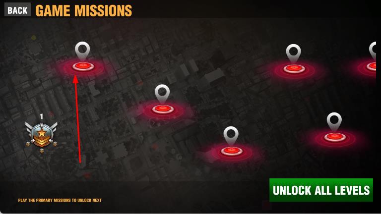 1、进入游戏,在任务选择界面点击红色标识的任务点,开启狙击任务。