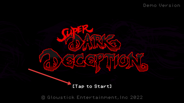 1、游戏启动界面有Tap to Start提示,点击该文字,即可进入Super Dark Deception开启冒险。