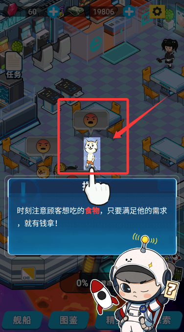 3、留意店内顾客头顶的气泡提示,点击查看他们渴望品尝的特色美食。