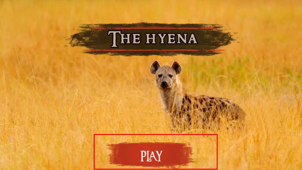 1、点击主界面红色PLAY按钮,进入草原场景,操控鬣狗初始血量118/118、等级1/800开启生存冒险。
