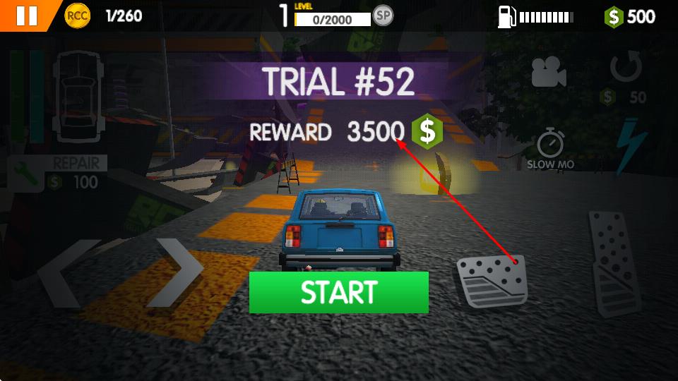 3、解锁TRIAL#52等赛事,点击绿色START按钮参赛,完成挑战可获取3500$等金币奖励,用于车辆后续改装升级。