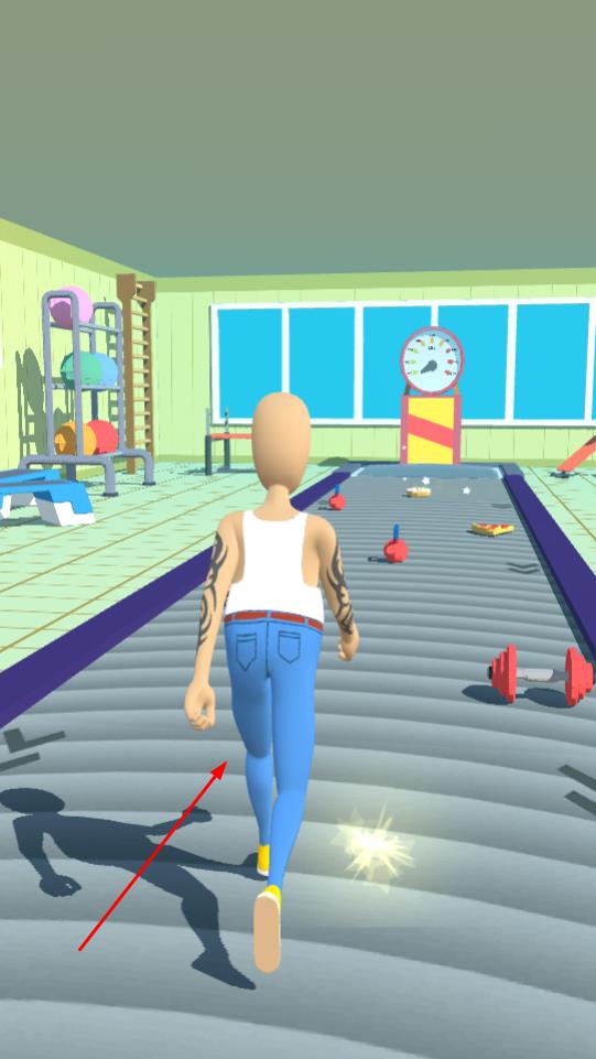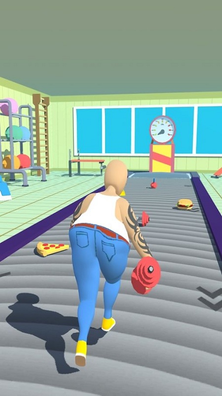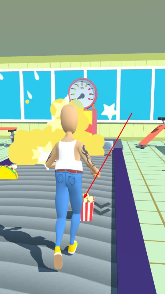 1、操控角色在健身房跑道前进,收集沿途爆米花、食物等道具,留意散落的健身器材障碍。