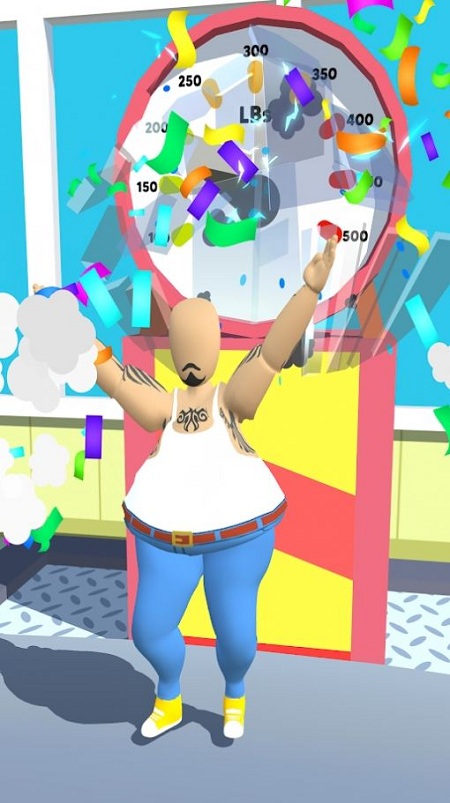 2、同时在收集道具过程中,角色体型随获取物品逐渐变化,持续向终点体重秤进发。