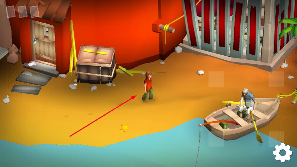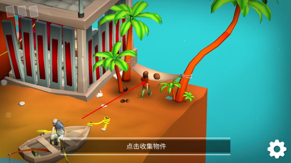1、操控角色在沙滩场景移动,靠近船只、建筑等区域,触发场景探索流程,开启冒险序幕。