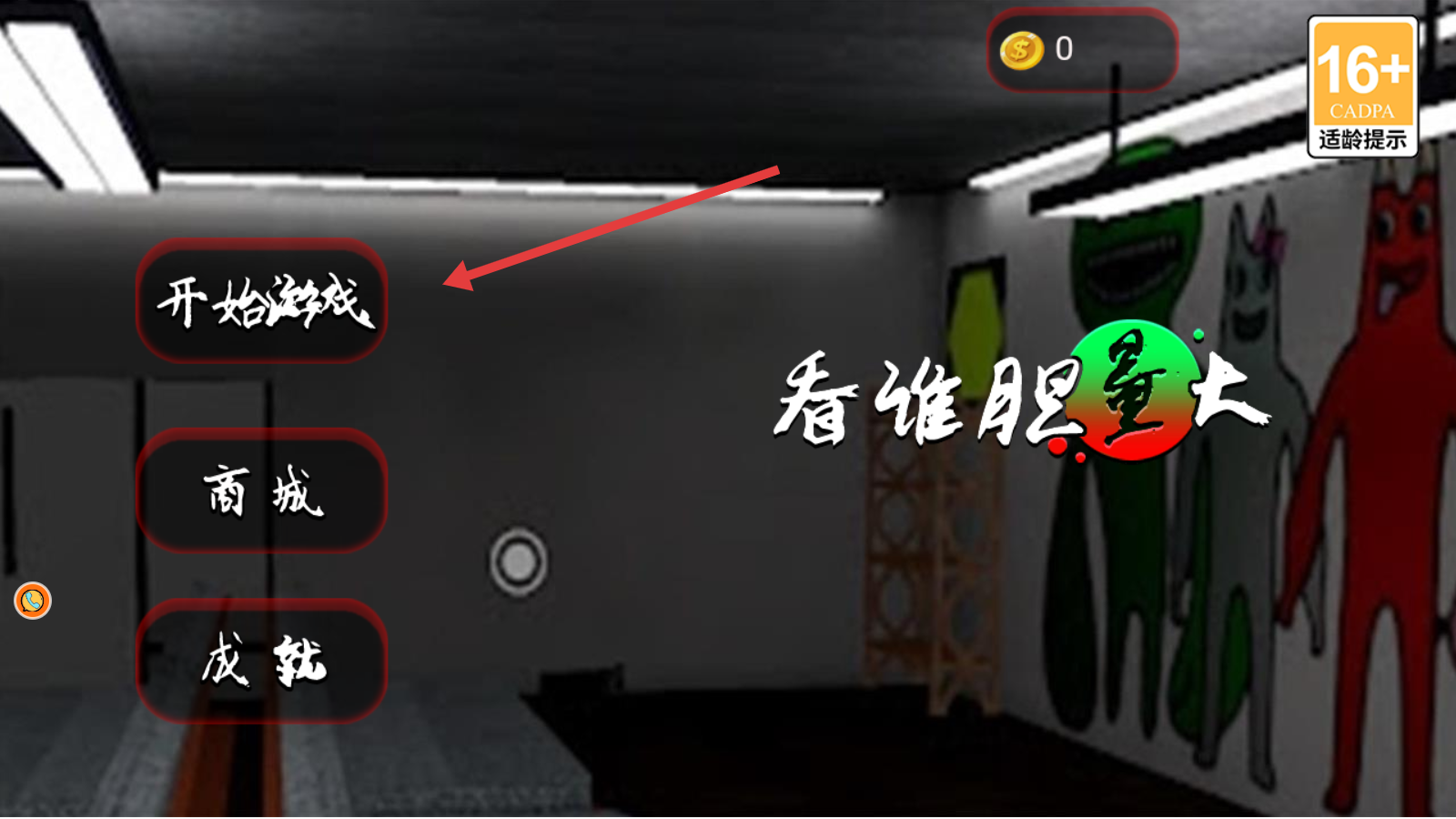 1、主界面有开始游戏按钮,点击该按钮,进入地图选择环节,开启看谁胆量⼤的冒险流程。