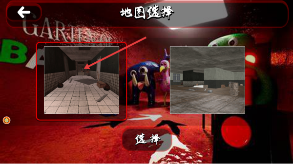 2、地图选择页呈现两个场景,选左侧带箭头标识的地图,点击选择,进入对应关卡展开探索挑战。