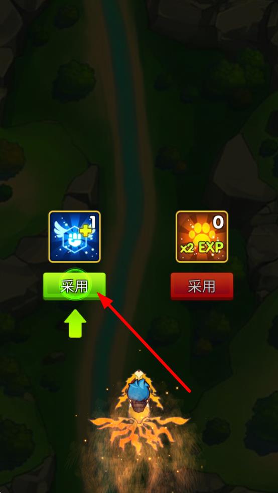 2、观察左侧技能图标特性,点击箭头标注的绿色采用的按钮,选用该技能来增强角色的战斗能力。