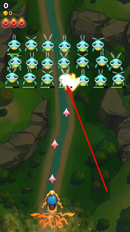 3、操控角色瞄准箭头所指的敌人所在区域发射攻击,精准打击前方整齐排列的敌人,借助攻击消灭对手。