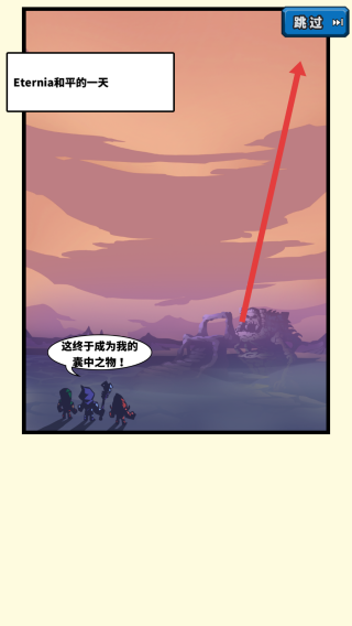 2、游戏剧情页面中,通过点击右上角的跳过按钮,快速略过故事叙述,进入实际游戏战斗环节。