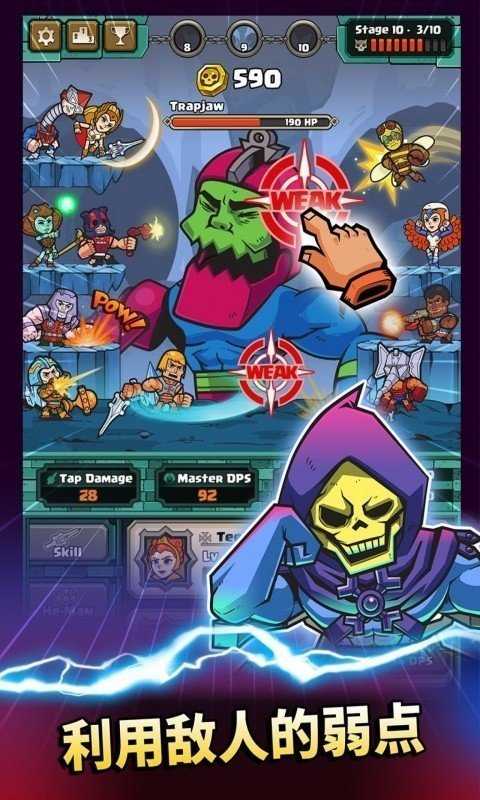 3、同伴召唤助力:能呼唤20多名He-Man的同伴帮助作战,在战争中与同伴协同发力取得胜利,同伴系统为战斗增添策略性与团队协作的乐趣。