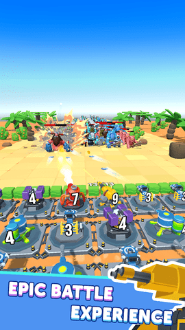 2、合并升级强化:将相同等级炮台合并,解锁更高阶炮塔,提升攻击属性,通过最优合并方案快速增强防御实力。