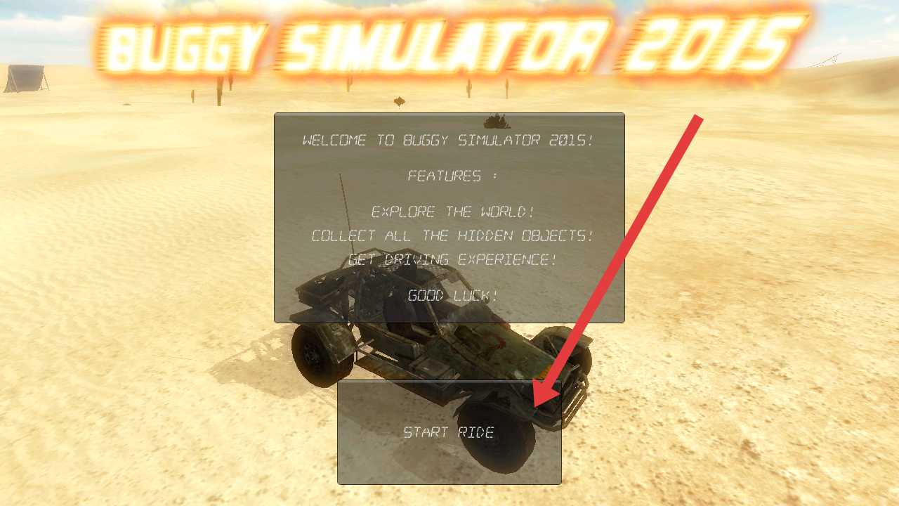 1、在沙漠越野赛车的游戏启动界面,点击START RIDE按钮,开启越野车沙漠驾驶之旅。