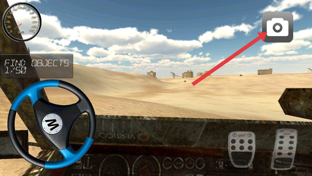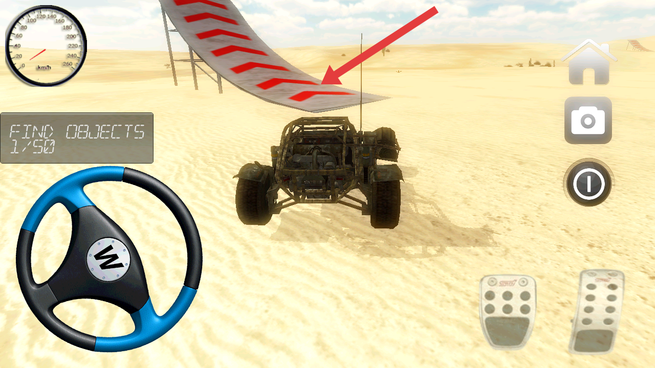 3、操控车辆驶向红色箭头标识的斜坡,尝试特技跳跃,同时推进寻找物品任务当前进度1/50。