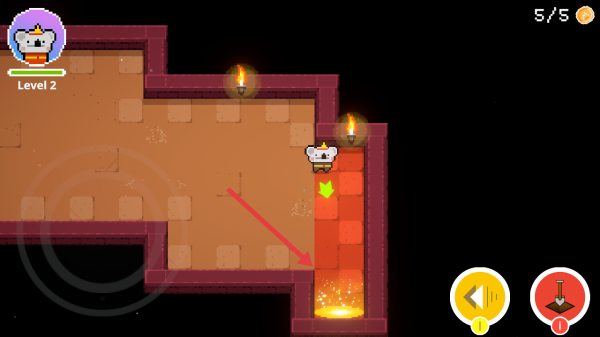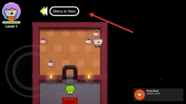 1、Level1界面点击Menu is here旁箭头进入地牢场景,操控考拉角色探索,打破陶罐触发互动,推进关卡流程。