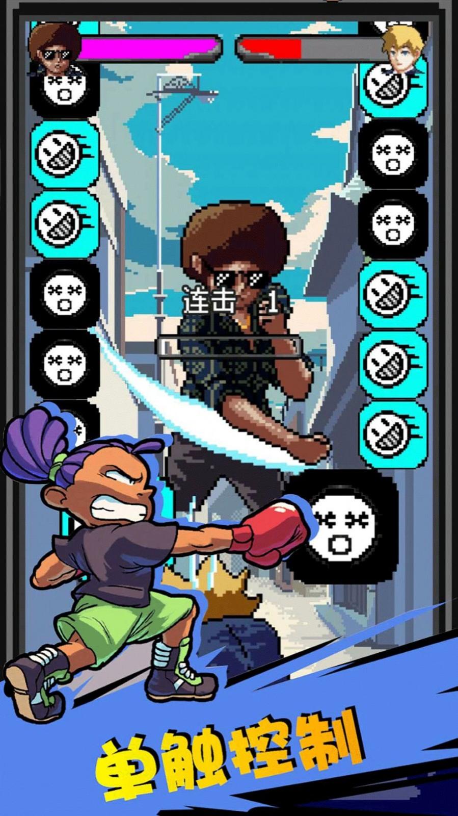 3、角色互动鲜活:对手被打服后会跪地比弱手势,赢了能揪着对手的衣领晃悠,这种拟人化互动让角色更鲜活,仿佛在和真实的街头混混对决。