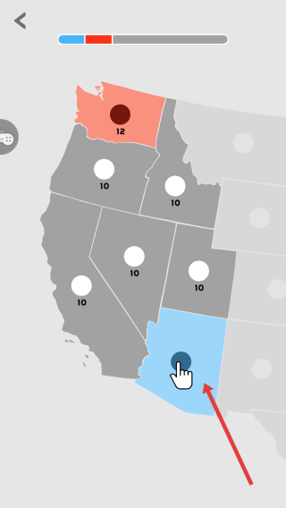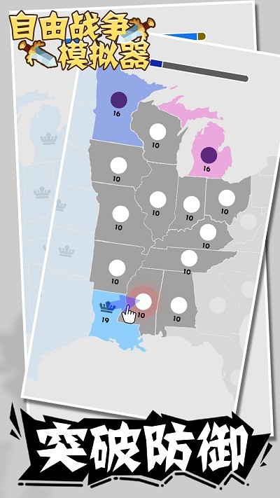 2、留意上方进度条,代表势力平衡,集中兵力突破关键区域如敌方高数值点,同时防守已占领领地,避免被反击。