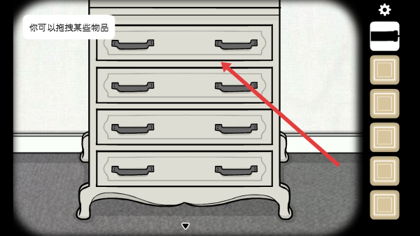 3、遇到抽屉时,根据提示可以拖拽物品或直接操作抽屉,尝试打开获取道具,推进解谜进程。