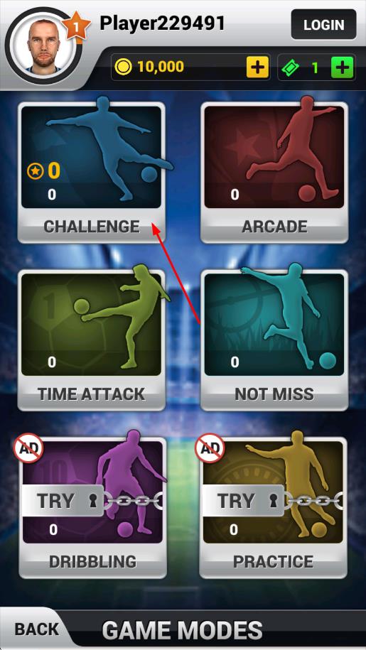 1、进入游戏后,在模式选择界面挑选玩法,如点球模式或关卡挑战,拖动屏幕调整射门方向与力度,松开完成射门。