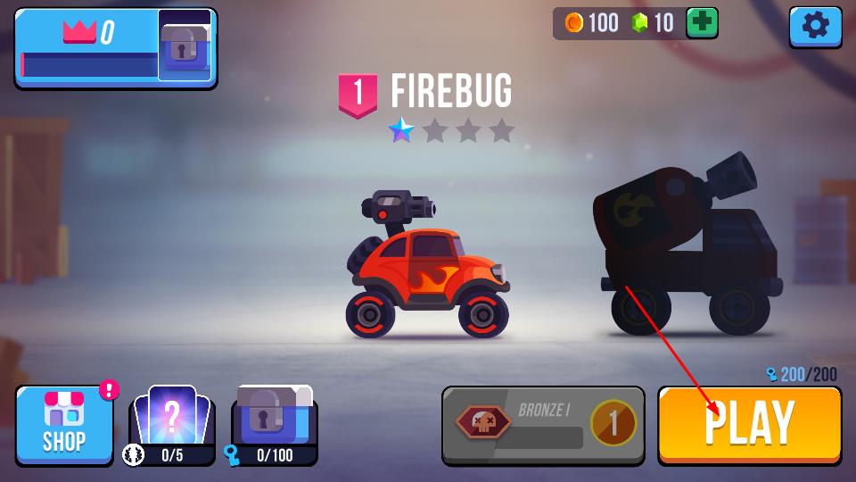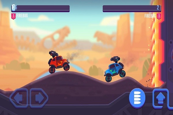 1、点击主界面黄色PLAY按钮,选定Firebug战车,即可进入对战模式,与Skull-O-Bike等对手在赛道展开竞技对抗,开启战车交锋。