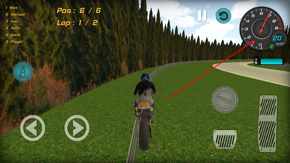 2、比赛中借左下角方向键控转向,右侧踏板调油门与刹车,观察速度表把控动力,于赛道上超越前方对手。