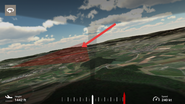 2、需要操控飞机朝着屏幕红色标记的区域飞行,该区域为目标落点,需要精准规划飞行路径。