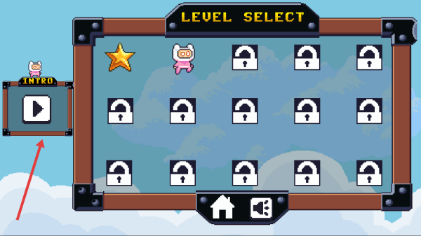 2、关卡选择页点击左侧标INTRO的初始关卡,进入第一关场景,准备操控角色开始挑战。