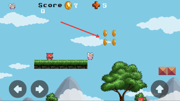 3、游戏中用方向键移动、跳跃键起跳,靠近空中金币时跳跃拾取,躲避敌人推进冒险、积累分数。