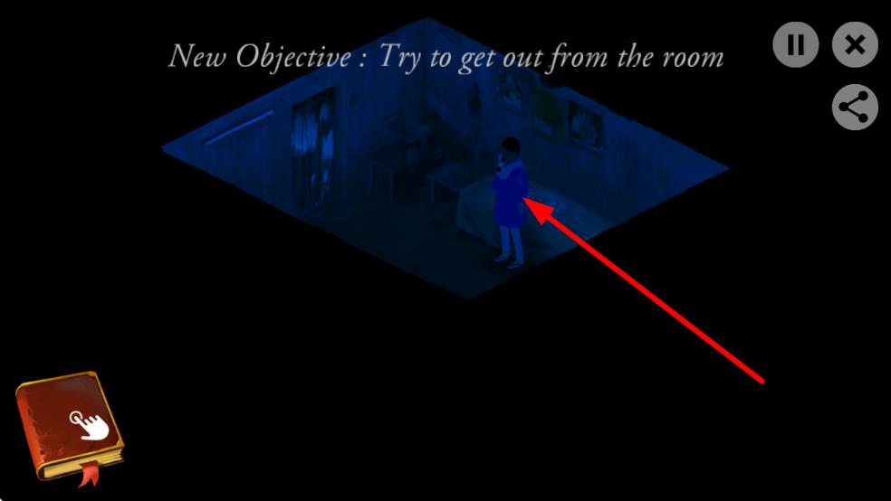 2、看到New Objective-Try-to get out from提示操作,在房间内探索,寻找出口推进逃离任务。