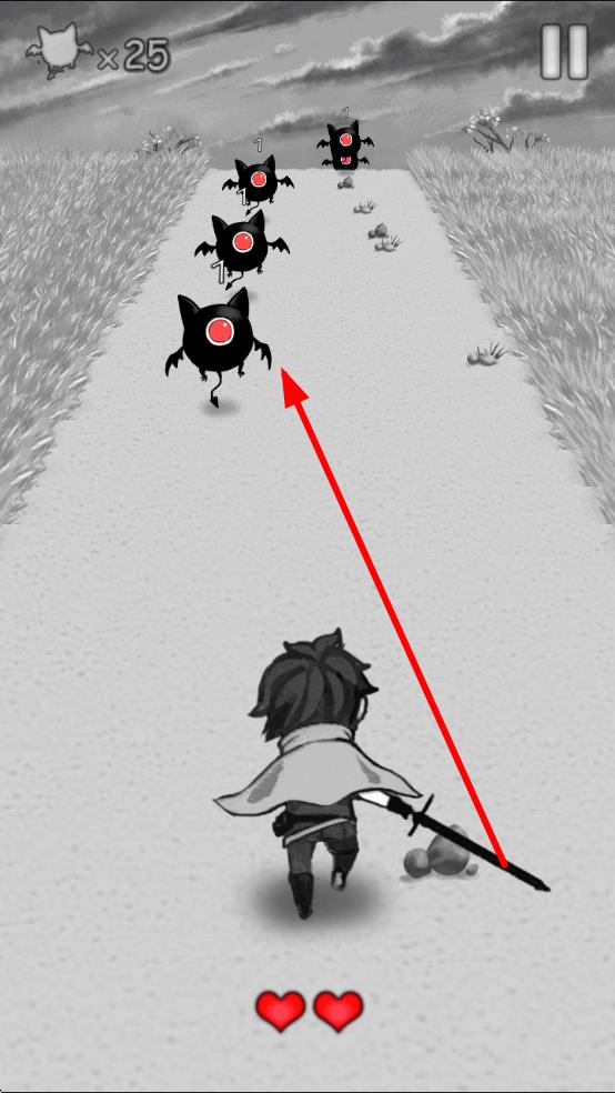 3、进入战斗场景,遇到箭头指向的怪物时,根据怪物所在左右位置,对应点击画面左或右半边,精准攻击怪物,推进进程。