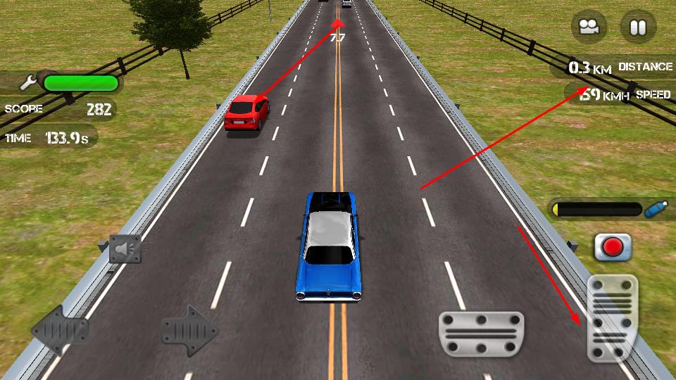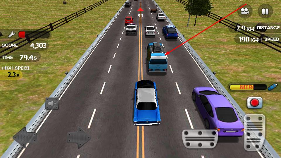 2、在公路行驶时,利用虚拟按键操控赛车,在车流中开辟前行路线,既要摆脱拥堵,又要保持高速,每一次精准操作都助力冲向终点。