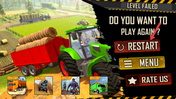 3、如果货物掉落则这一关卡失败,需要点击RESTART的按钮,重新挑战当前的运输关卡。