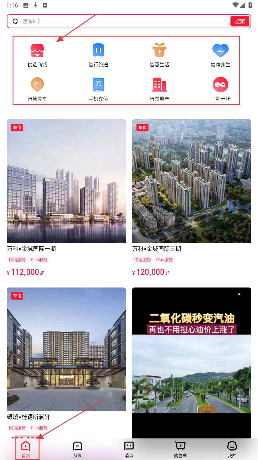 1、进入APP后,可先从【首页】进入,利用顶部功能区【优选商城】等入口,快速开启对应服务体验。