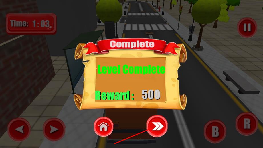 2、操控车辆,通过屏幕下方的控制按钮,控制车辆的移动方向和速度,按照箭头指示的方向驾驶,注意时间限制,在规定时间内到达指定地点。