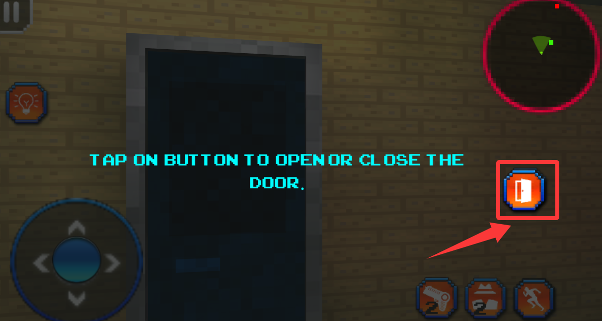 3、跟着提示,走过去屋那里进去躲避怪物,点击开门。