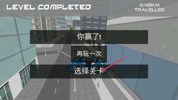 4、成功通关后,点击【选择关卡】继续下一关,积累经验,提升无人机操控技巧。