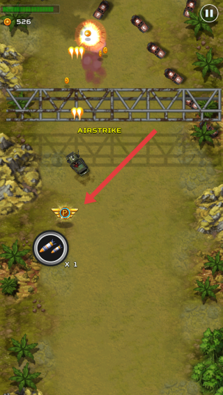 3、击败周围的敌人后,拾取地面AIRSTRIKE的道具,可以解锁空袭的技能,应对后续敌人攻势。