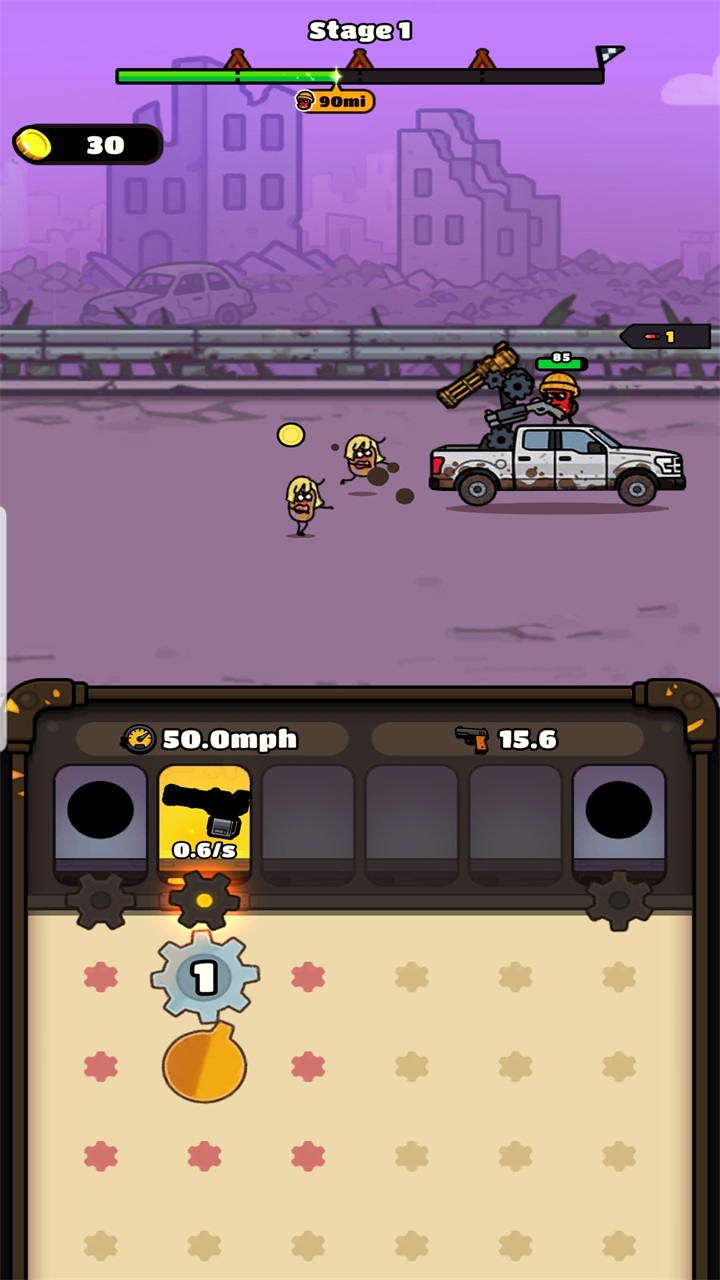 2.继续闯关前进后我们可以获得更多的齿轮提升我们的车辆和武器。