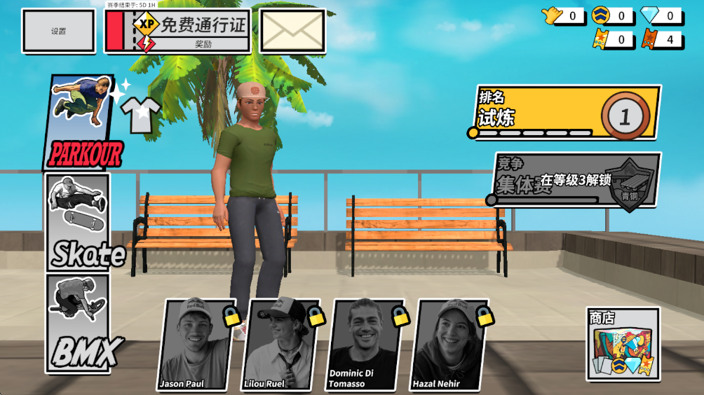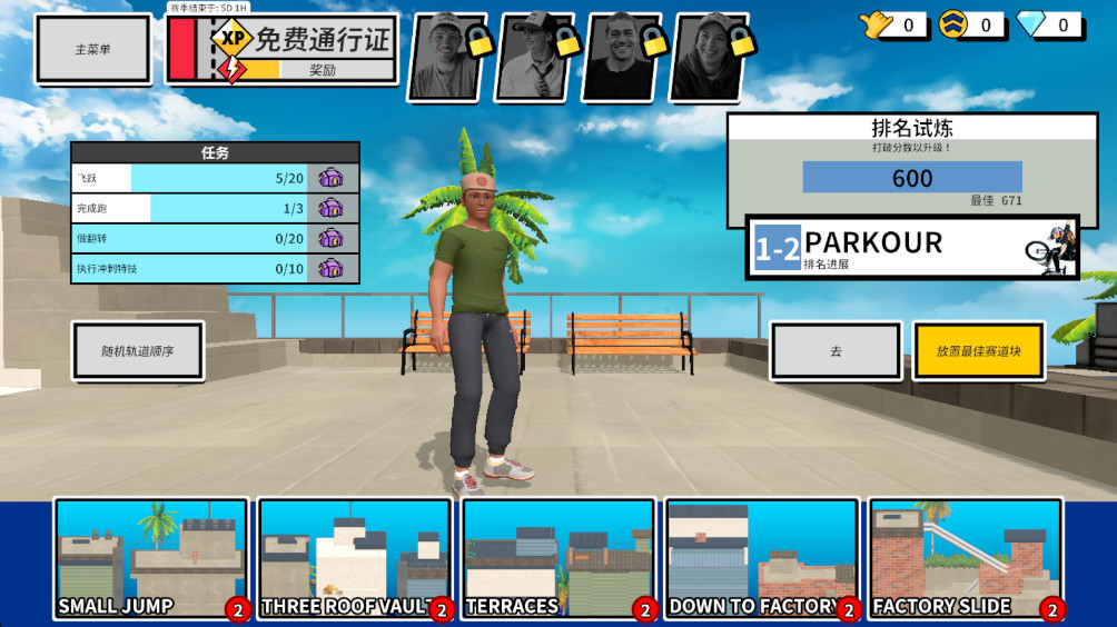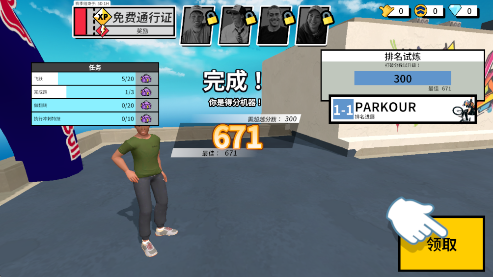 2.从跑酷、滑板、越野自行车中选择一种运动模式。
