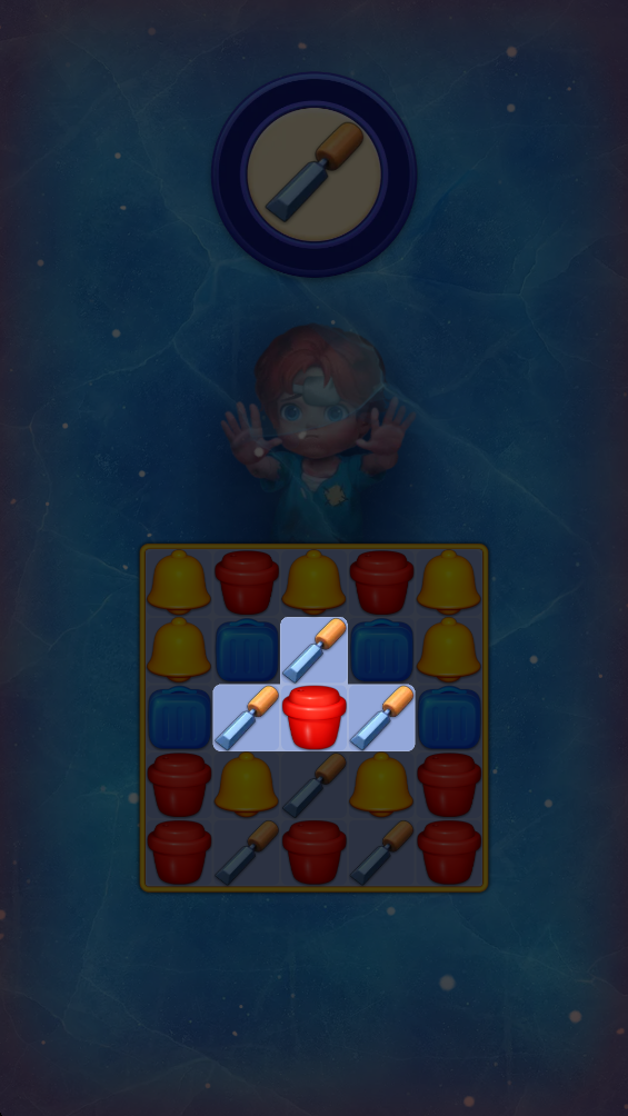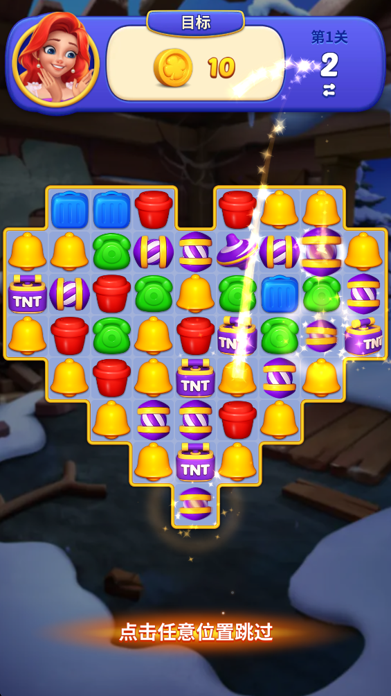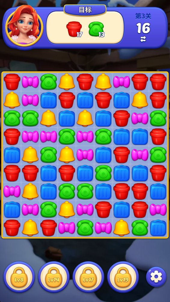 2.移动方块,将三个相同的方块放在一条线上就可以消除。
