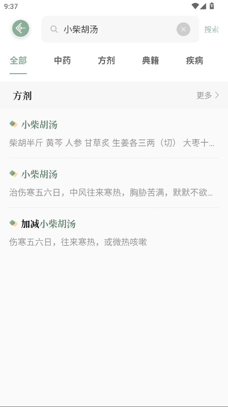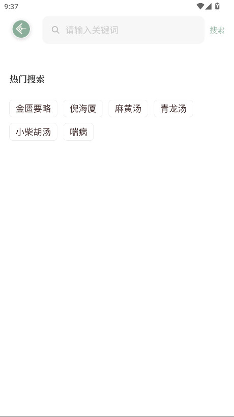 3.返回到首页,输入中草药、书籍、中药、方剂、疾病等关键字,都可以找到我们想要的答案。