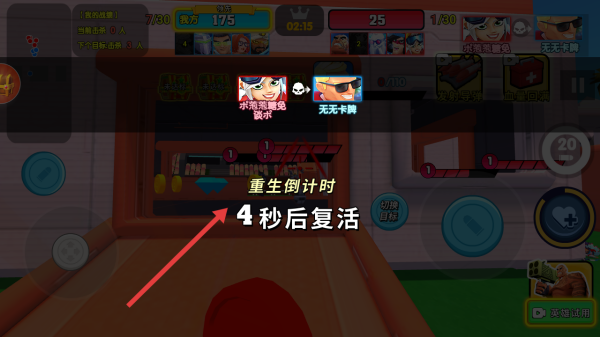 3、若被击败,界面弹出重生倒计时,等待复活读秒结束后重返战场,协同队友持续争夺对战胜利。