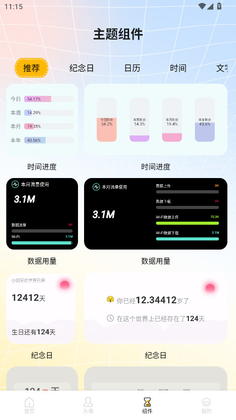 5.点击下方的组件,可以看到不同分类的小组件可以免费使用哈,大家喜欢哪个就直接点击哪个就好。