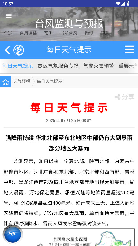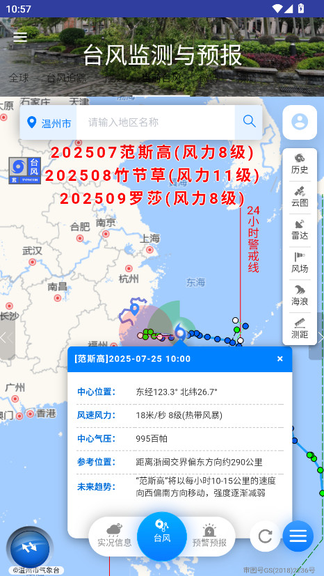 台风监测与预报app能让您实时查看当前台风的路径实况,并提供精准的未来路径预报。这款应用最大的好处在于,它能帮助用户及时了解台风动态,提前做好防范准备,无论是出游、渔业生产还是日常生活,都能有效规避台风带来的风险,保障生命安全。在台风监测与预报的守护下,每一次风雨都将不再是未知的恐慌,而是清晰可预见的自然律动。它将成为您应对自然挑战的智慧伙伴,让您在风云变幻中,依然能感受到科技带来的安心与从容。愿每一次预警都化作一份守护,让生活在风雨中依然充满力量与希望。