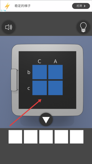1、稳定的梯子关卡,点击黑框内c列下方蓝色方块,触发机关进入地球仪场景推进解谜。