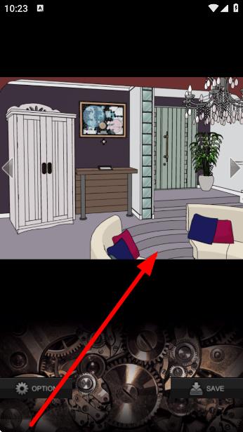 3、关注墙上的画,画面有独特图案,点击画中对应箭头指向位置,结合下方有畫的提示,探索画作关联的解谜元素。