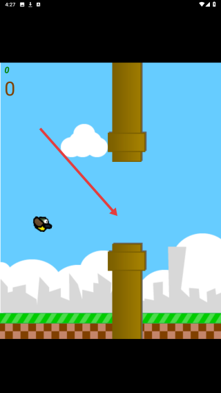 1、主界面点白色播放键,进像素场景,操控小鸟,点击屏幕让其跳跃,躲上下排列的管道障碍。