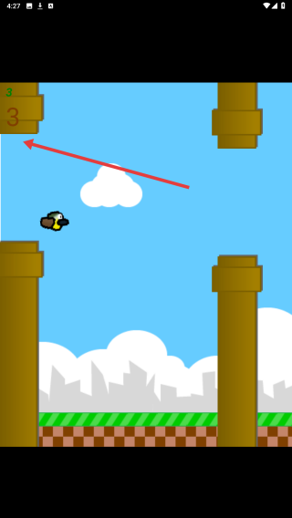 2、把握点击节奏,让小鸟在管道间隙穿行,避一组管道攒分数,留意顶部计数,维持飞行不撞管道。
