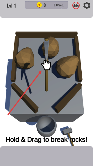 1、Lvl1开局,按Hold&Drag拖刀具砸石头,破碎后收集进熔炉,开启锻造第一步流程。