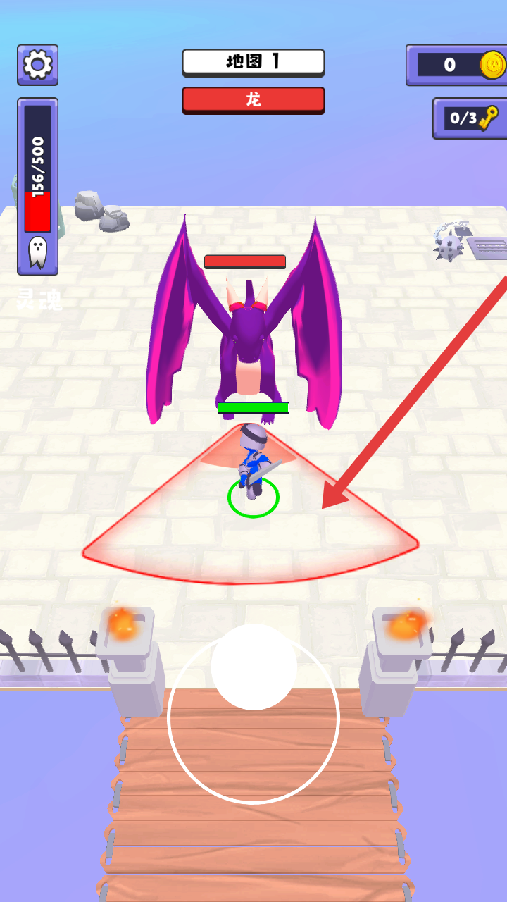 3、消灭完红色的敌人,接着直面紫色巨龙BOSS,观察BOSS攻击的范围,进行闪避并输出伤害。